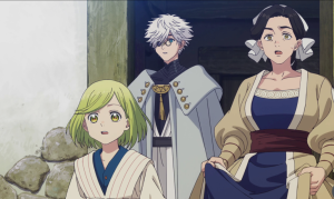 A sequência em que ela desenha o círculo mágico, ainda sem compreensão completa do assunto, é construída com uma tensão crescente. E quando a magia se manifesta de forma incontrolável, transformando sua mãe em pedra, o anime entrega um dos momentos mais impactantes dessa estreia. É uma virada brusca, mas extremamente eficaz, que redefine completamente o tom da narrativa.